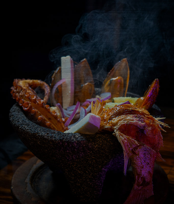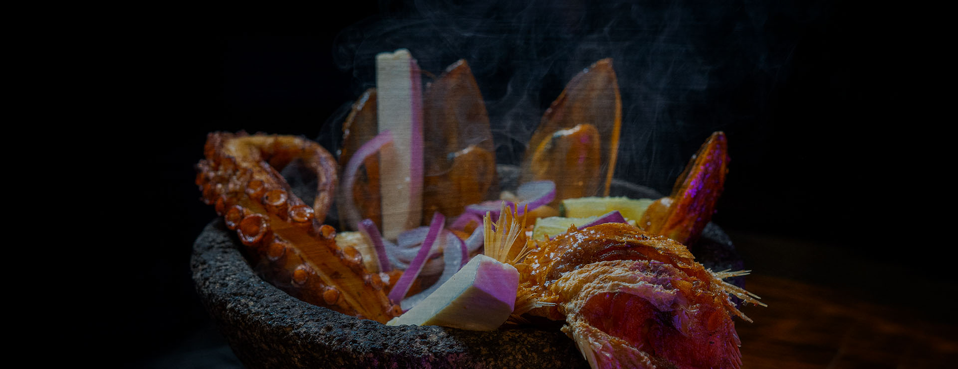 Big bowl filled with jumbo shrimp, jalapeño peppers, cilantro and onions. Served with tortillas.